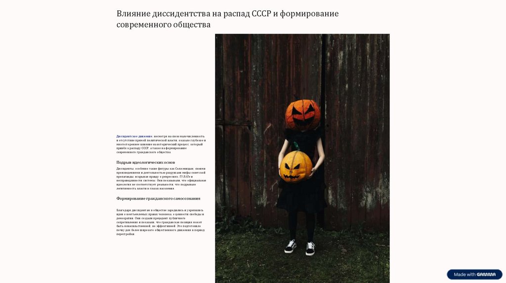 Влияние диссидентства на распад СССР и формированиесовременного общества