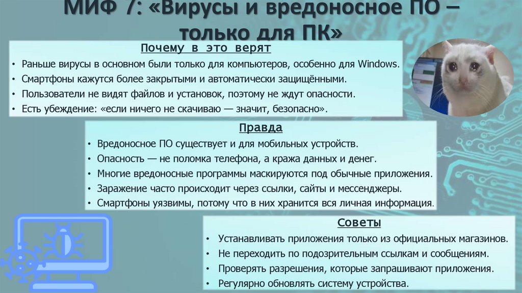 1. МИФ 7: «Вирусы и вредоносное ПО – только для ПК»