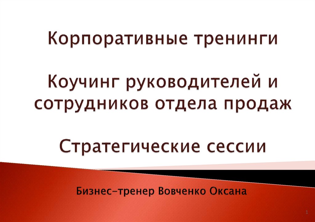 1. Корпоративные тренинги Коучинг руководителей и сотрудников отдела продаж Стратегические сессии