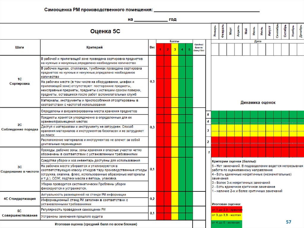 (чек-лист мониторинга 5С в динамике, график аудита 5С