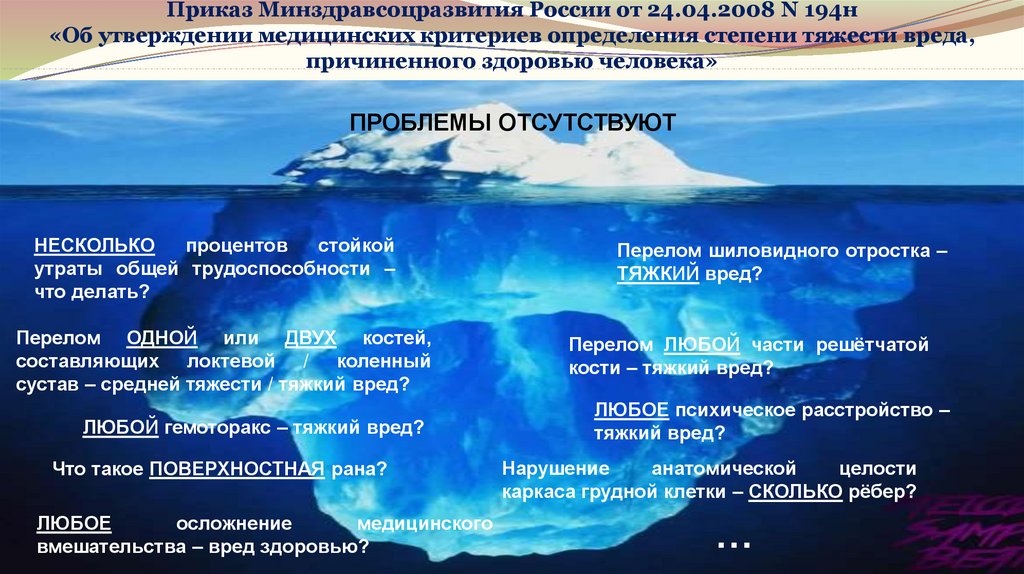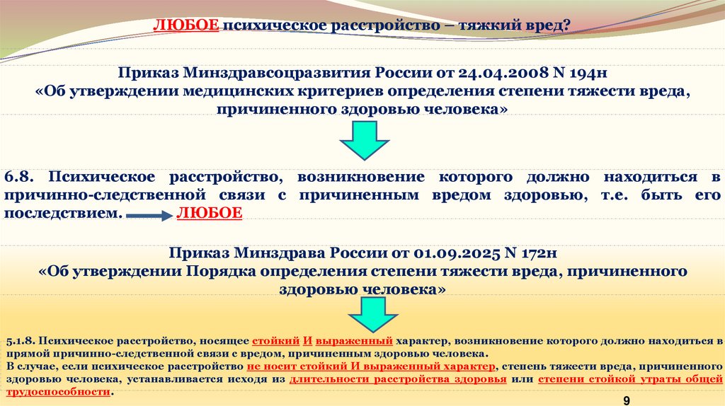 ЛЮБОЕ психическое расстройство – тяжкий вред?Приказ Минздравсоцразвития России от 24.04.2008 N 194н