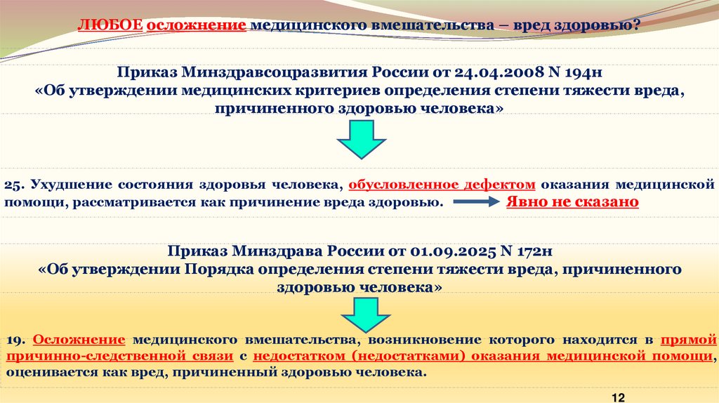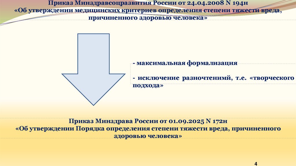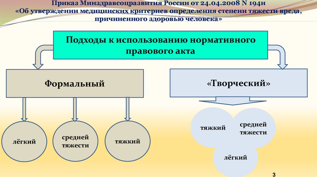 Приказ Минздравсоцразвития России от 24.04.2008 N 194н«Об утверждении медицинских критериев определения степени тяжести вреда,