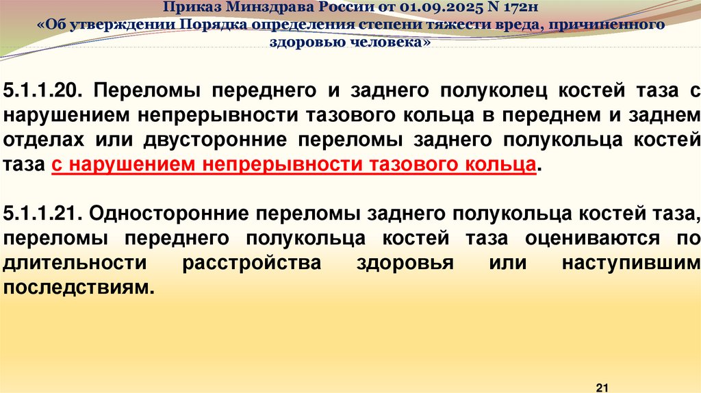 Приказ Минздрава России от 01.09.2025 N 172н«Об утверждении Порядка определения степени тяжести вреда, причиненного