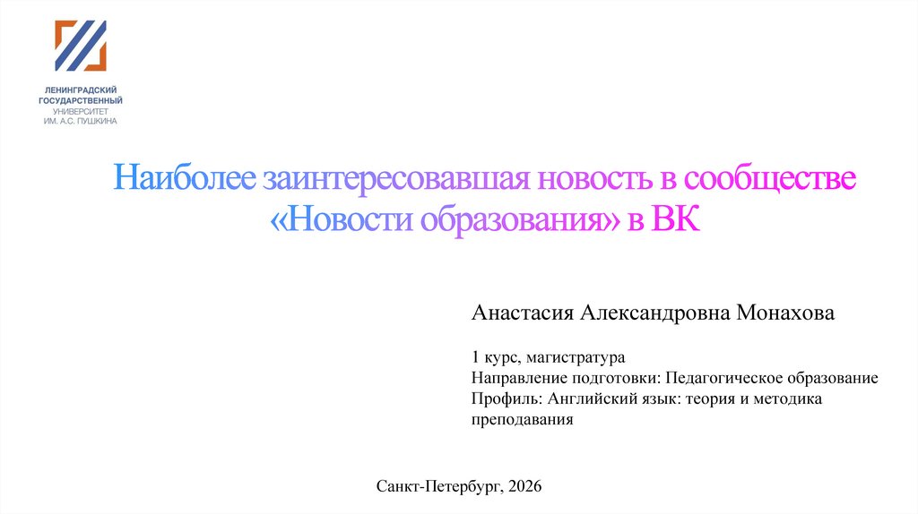 Анастасия Александровна Монахова1 курс, магистратура