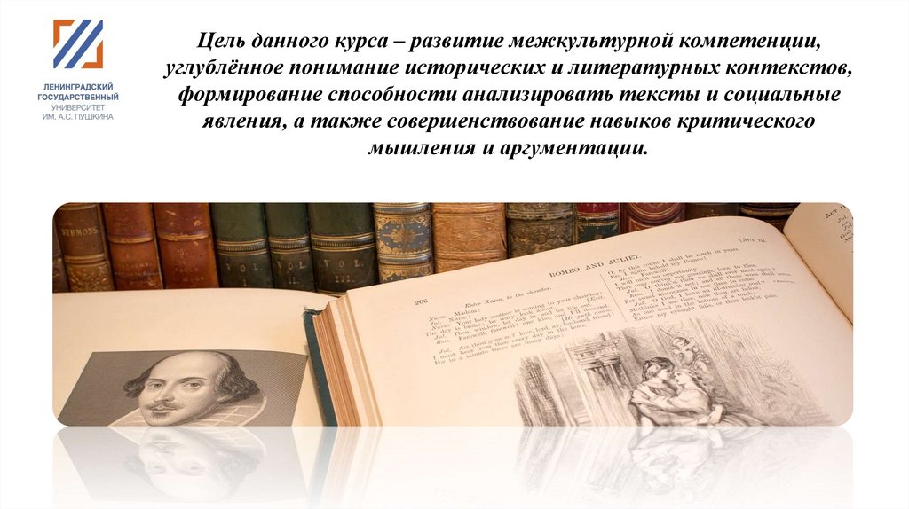 Цель данного курса – развитие межкультурной компетенции,углублённое понимание исторических и литературных контекстов,