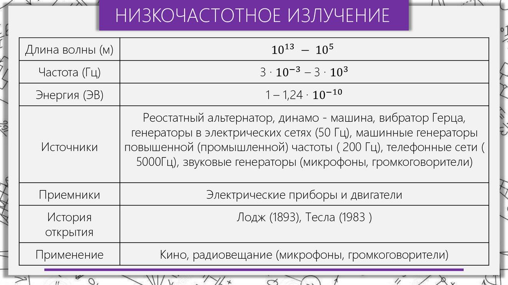 ВИДЫ ИЗЛУЧЕНИЙНизкочастотное
