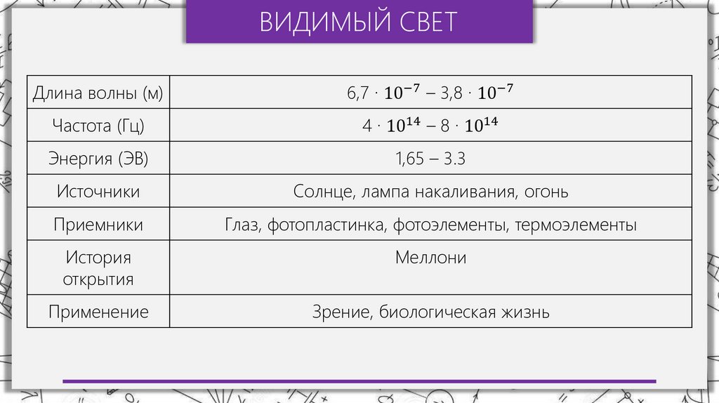 ВИДИМЫЙ СВЕТДлина волны (м)