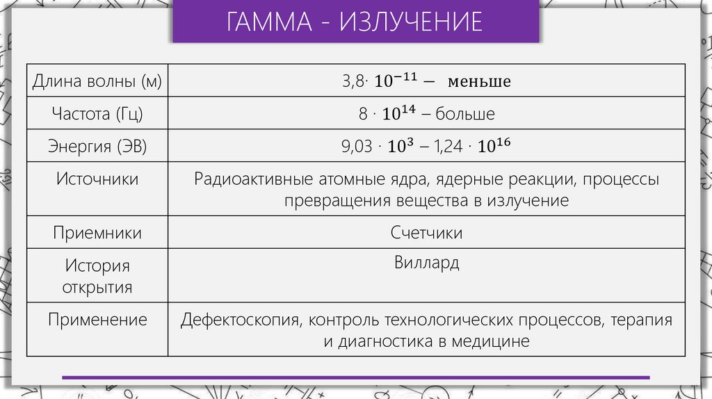 ГАММА - ИЗЛУЧЕНИЕДлина волны (м)