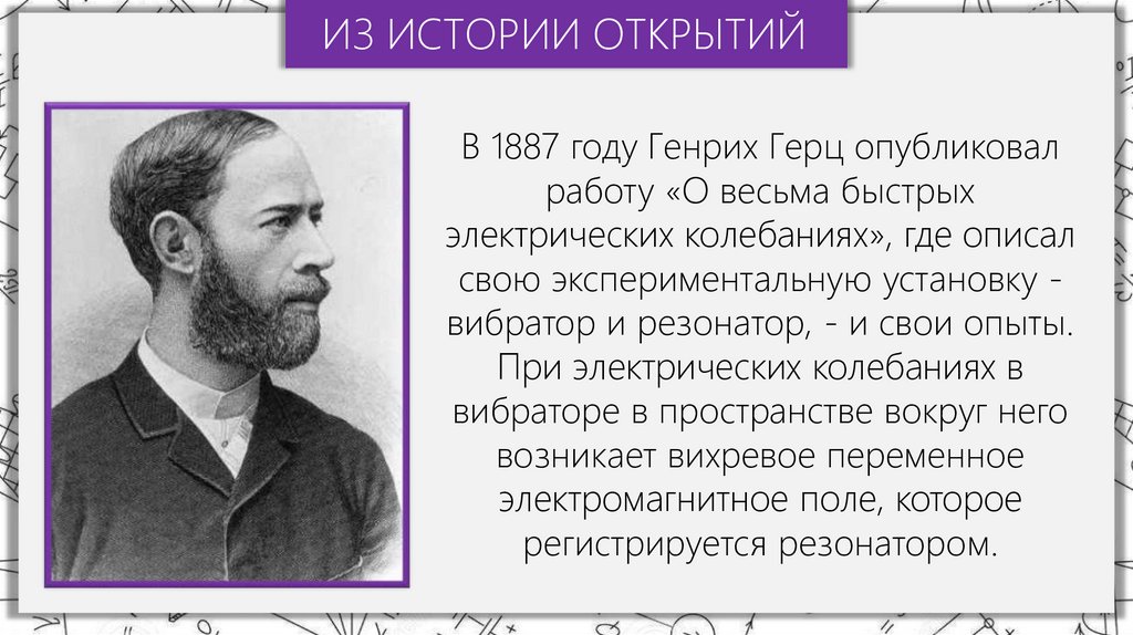 ИЗ ИСТОРИИ ОТКРЫТИЙВ 1887 году Генрих Герц опубликовал