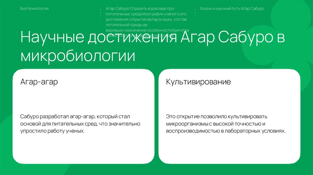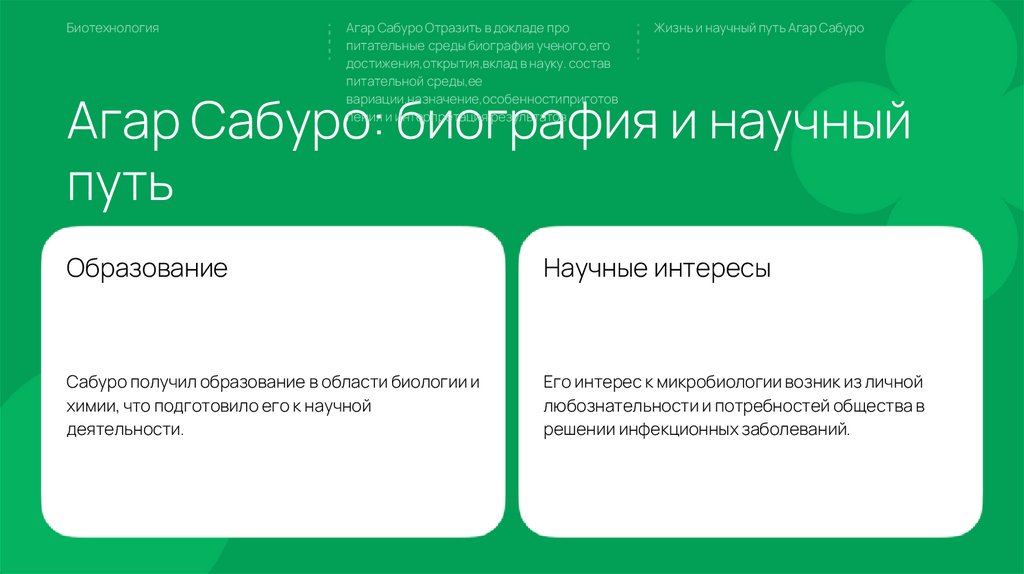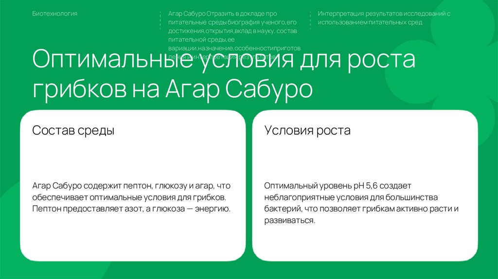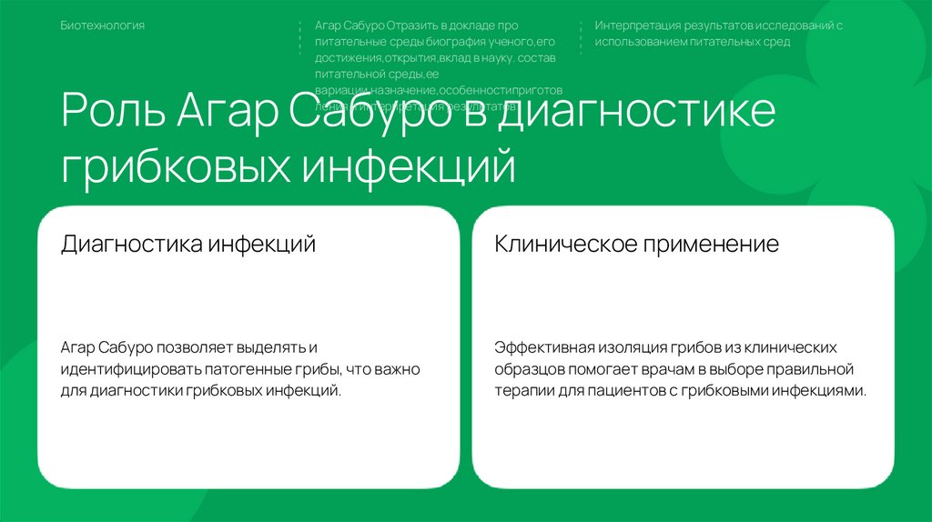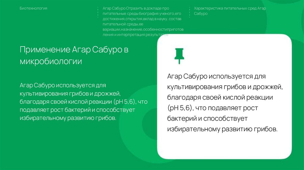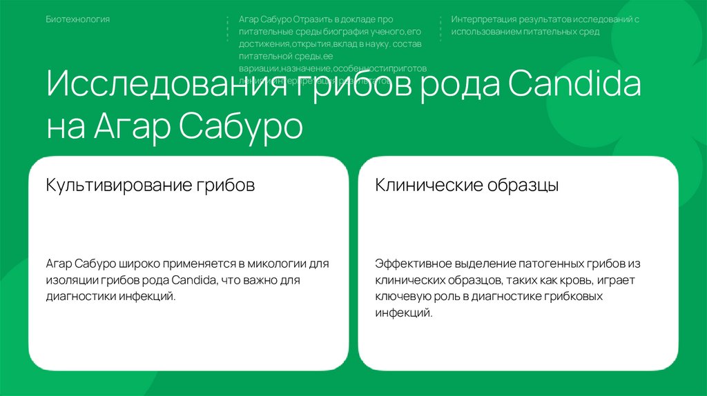 БиотехнологияАгар Сабуро Отразить в докладе про