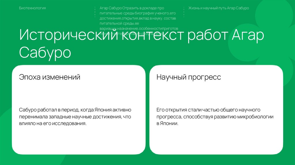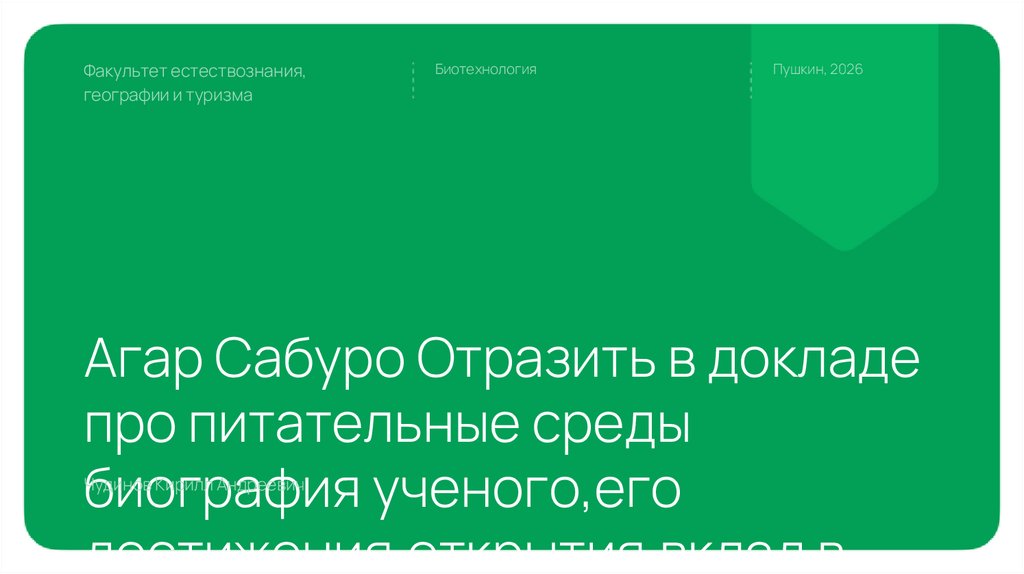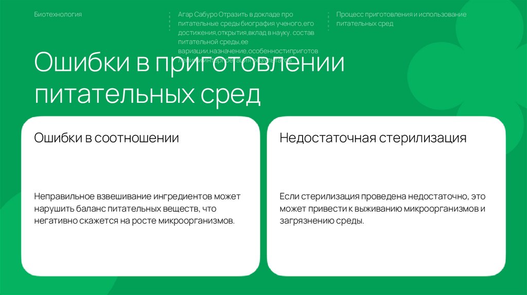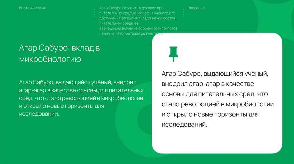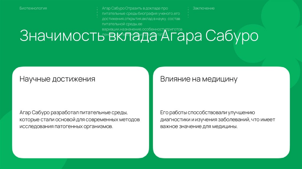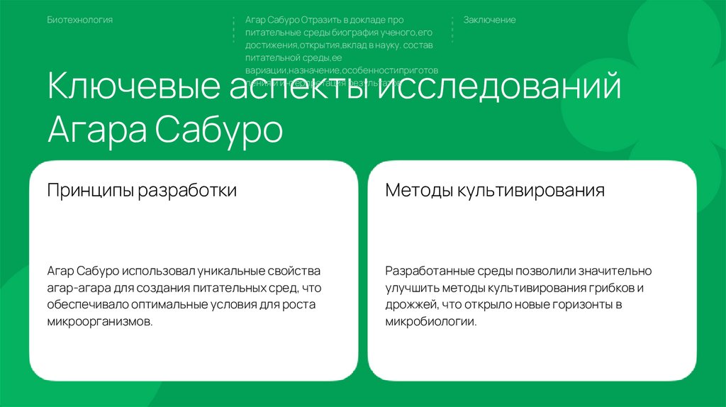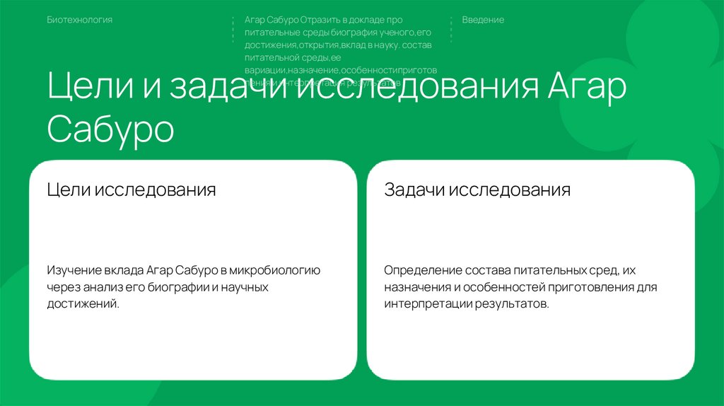 БиотехнологияАгар Сабуро Отразить в докладе про