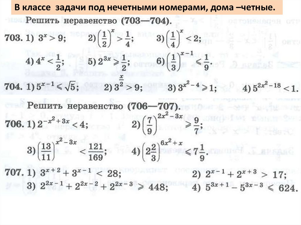 В классе задачи под нечетными номерами, дома –четные.