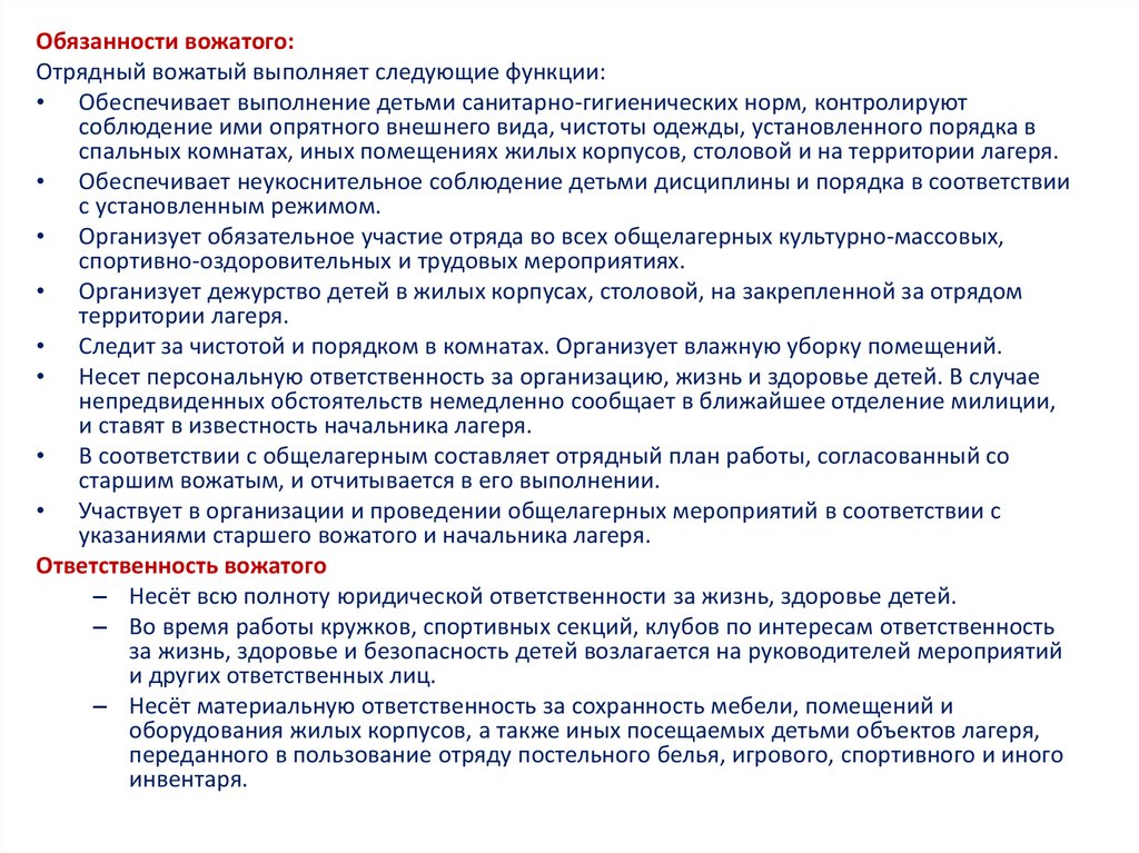 Вожатый обязан:• Нести ответственность за детей