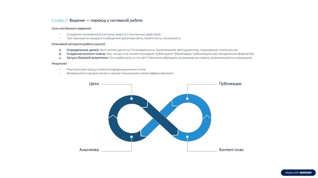 Создание отлаженной системы вместо спонтанных действий.