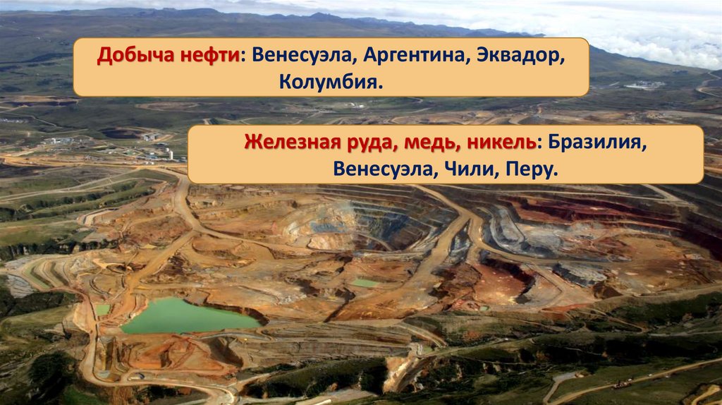 Добыча нефти: Венесуэла, Аргентина, Эквадор,Колумбия.