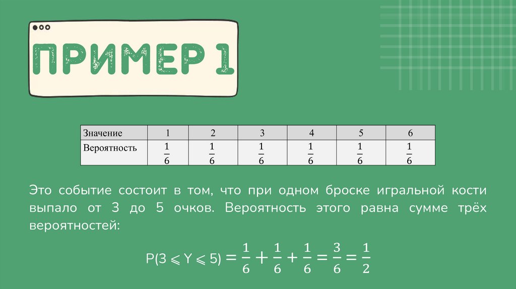 • Предположим, некто кидает игральную