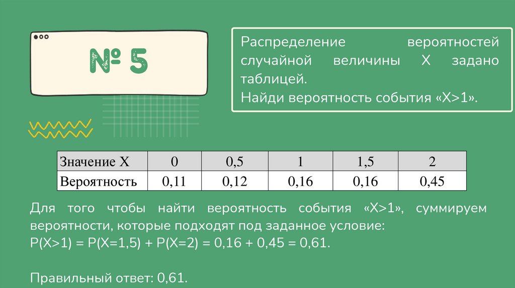 Найди вероятность события «X>1».