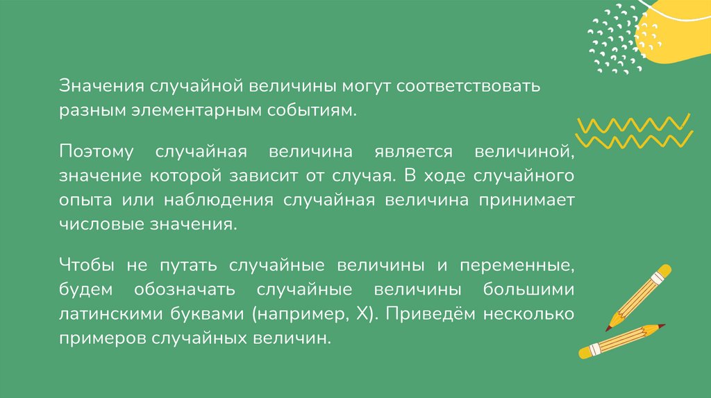 примеров случайных величин.