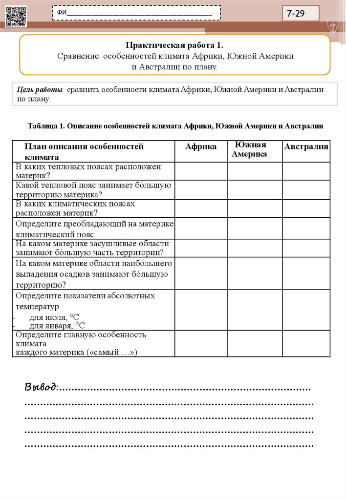 Цель работы: сравнить особенности климата Африки, Южной Америки и Австралии