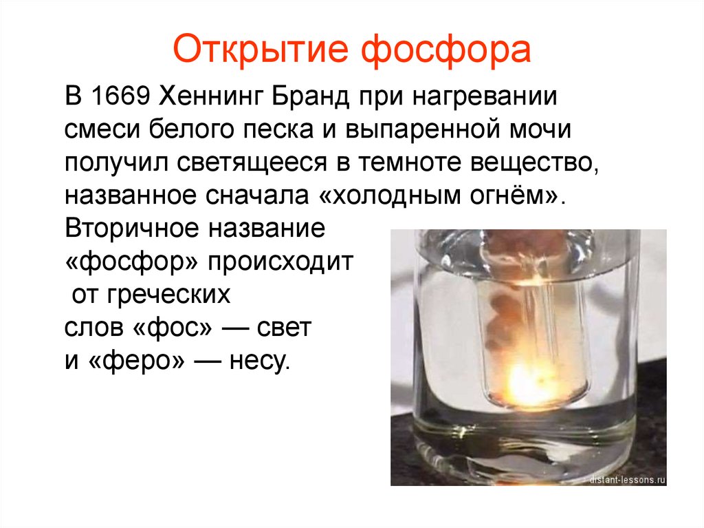 Открытие фосфораВ 1669 Хеннинг Бранд при нагревании