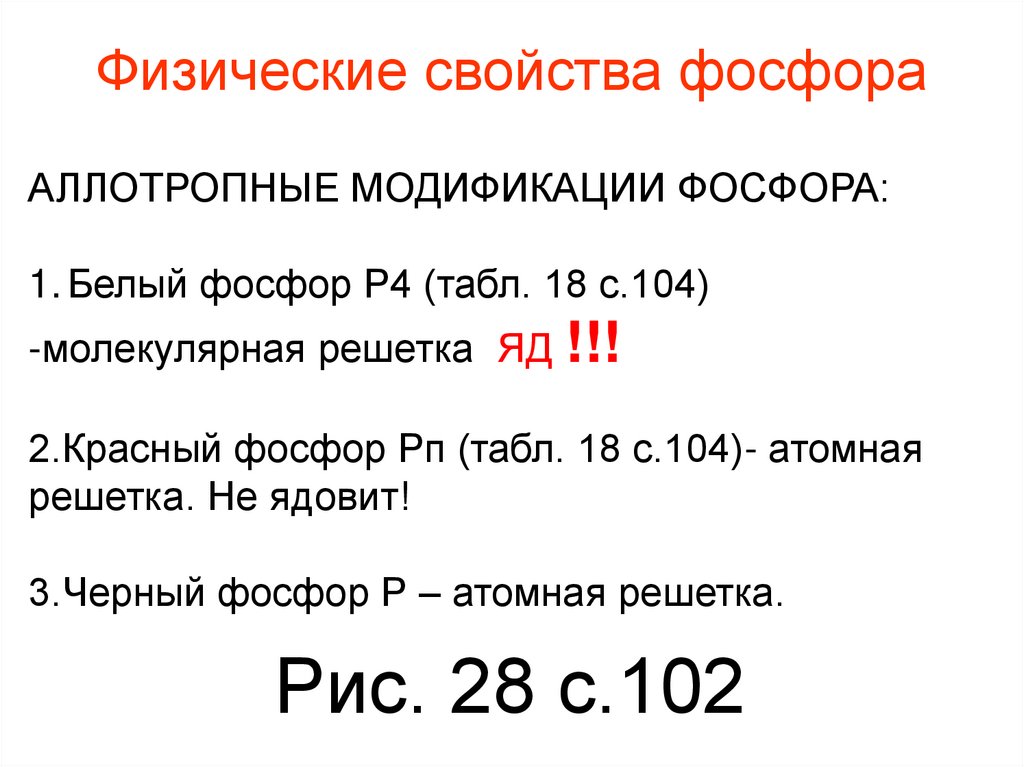 1. Белый фосфор Р4 (табл. 18 с.104)