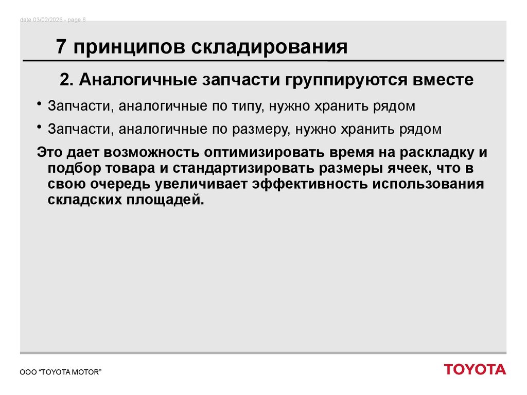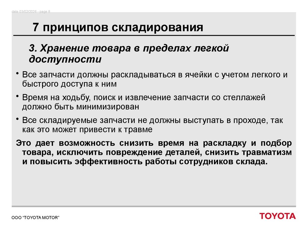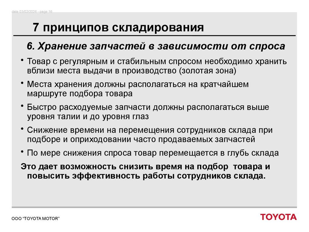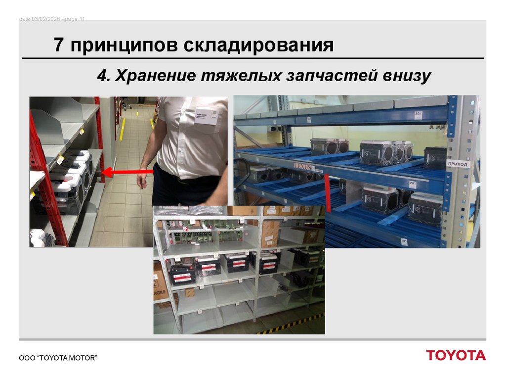 • Время на ходьбу, поиск и извлечение запчасти со стеллажей