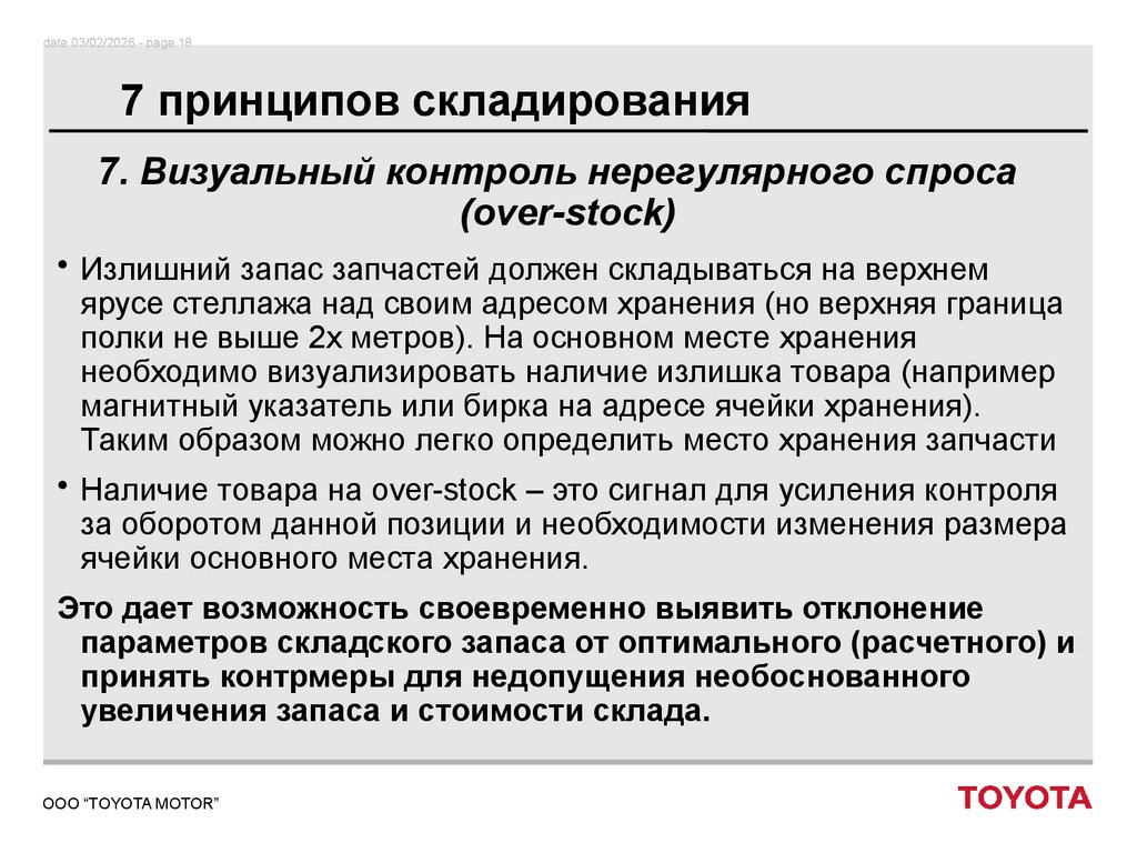 • Наличие товара на over-stock – это сигнал для усиления контроля