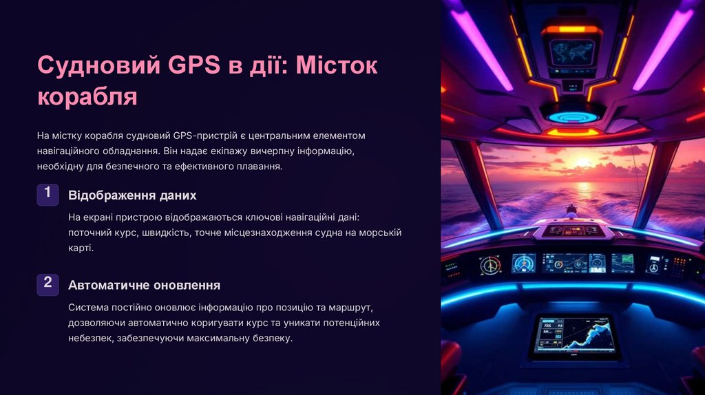 морськими картами, надаючи капітанам і штурманам повну візуалізацію