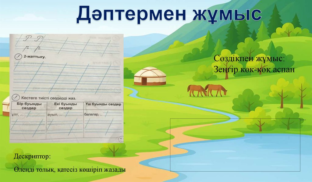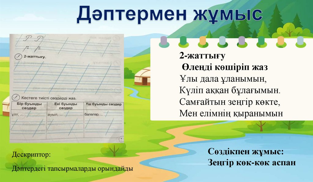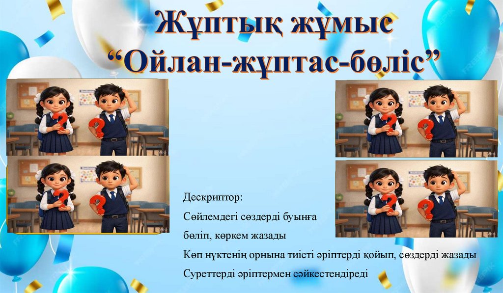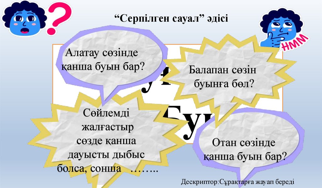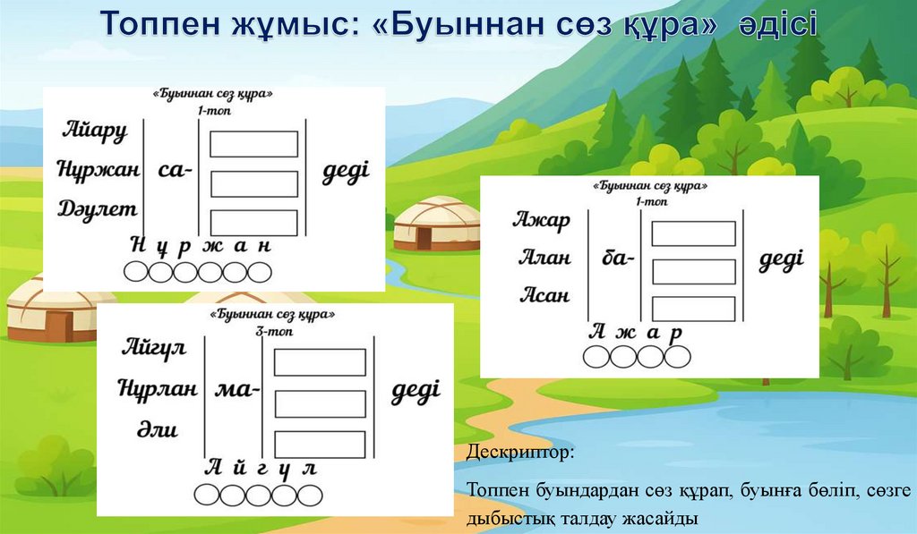 Дескриптор:Топпен буындардан сөз құрап, буынға бөліп, сөзге