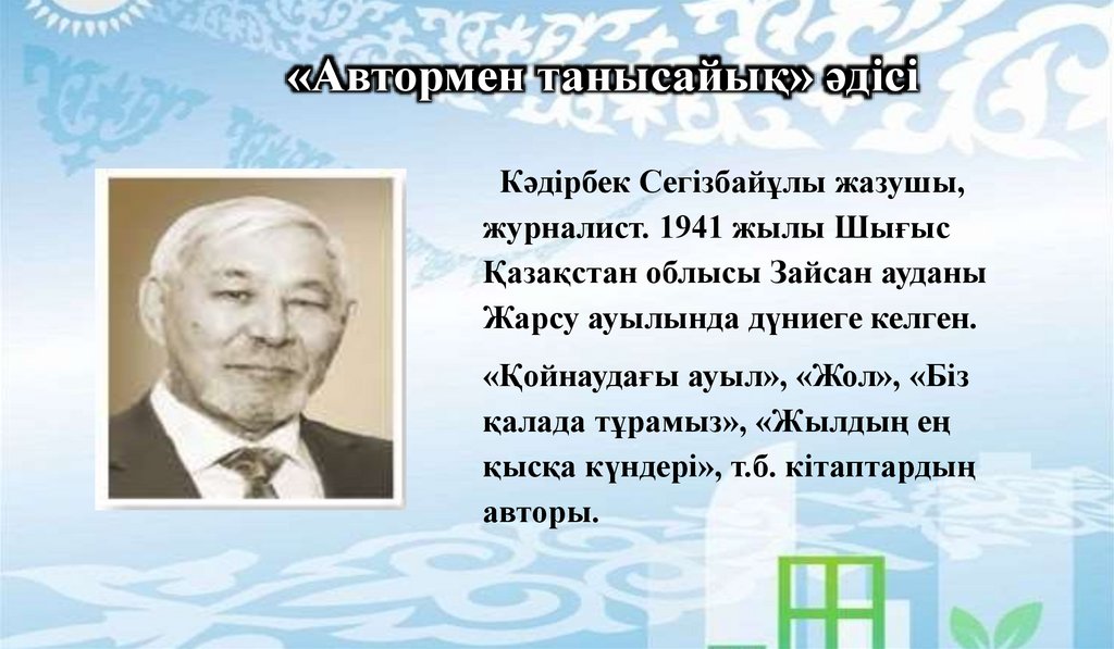 «Автормен танысайық» әдісіКәдірбек Сегізбайұлы жазушы,