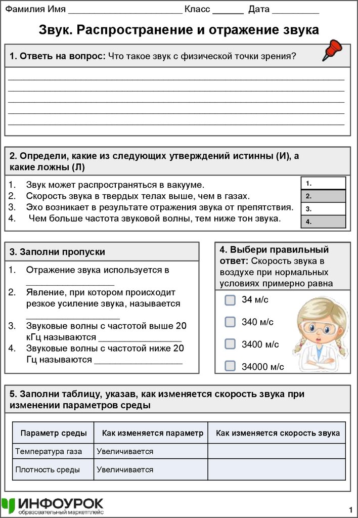 Фамилия Имя ______________________ Класс ______ Дата _________Звук. Распространение и отражение звука