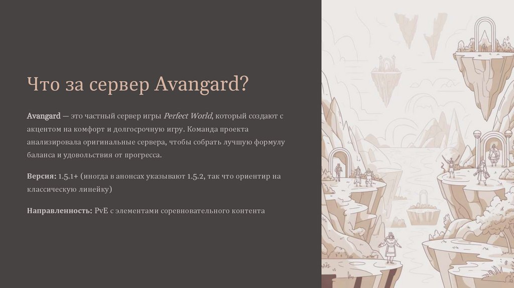 Что за сервер Avangard?Avangard — это частный сервер игры Perfect World, который создают с