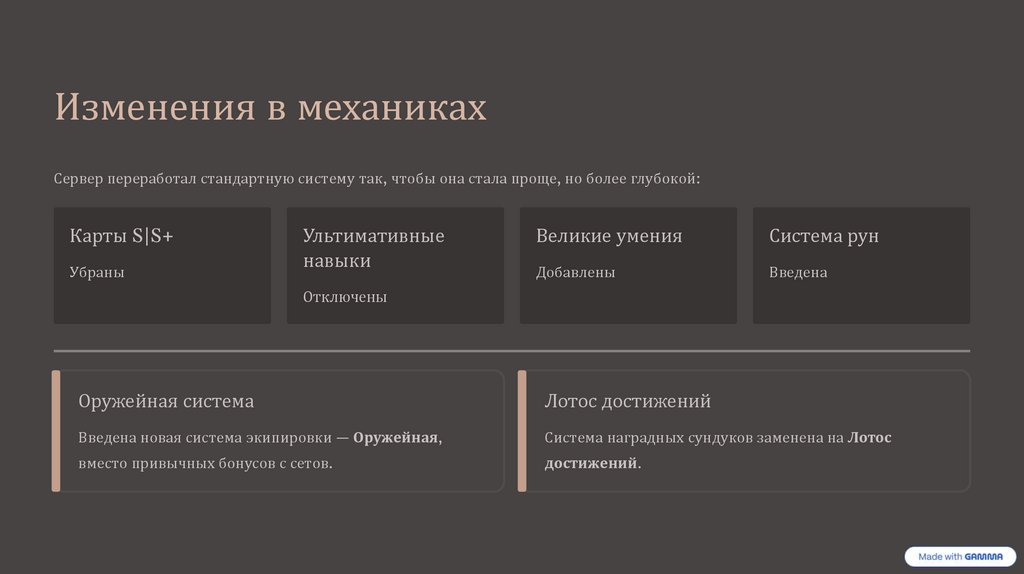 Изменения в механикахСервер переработал стандартную систему так, чтобы она стала проще, но более глубокой: