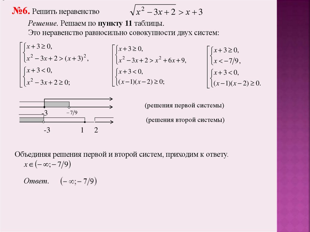 №1. Неравенство решается по пункту 7 таблицы№2. Неравенство решается по пункту 6 таблицы