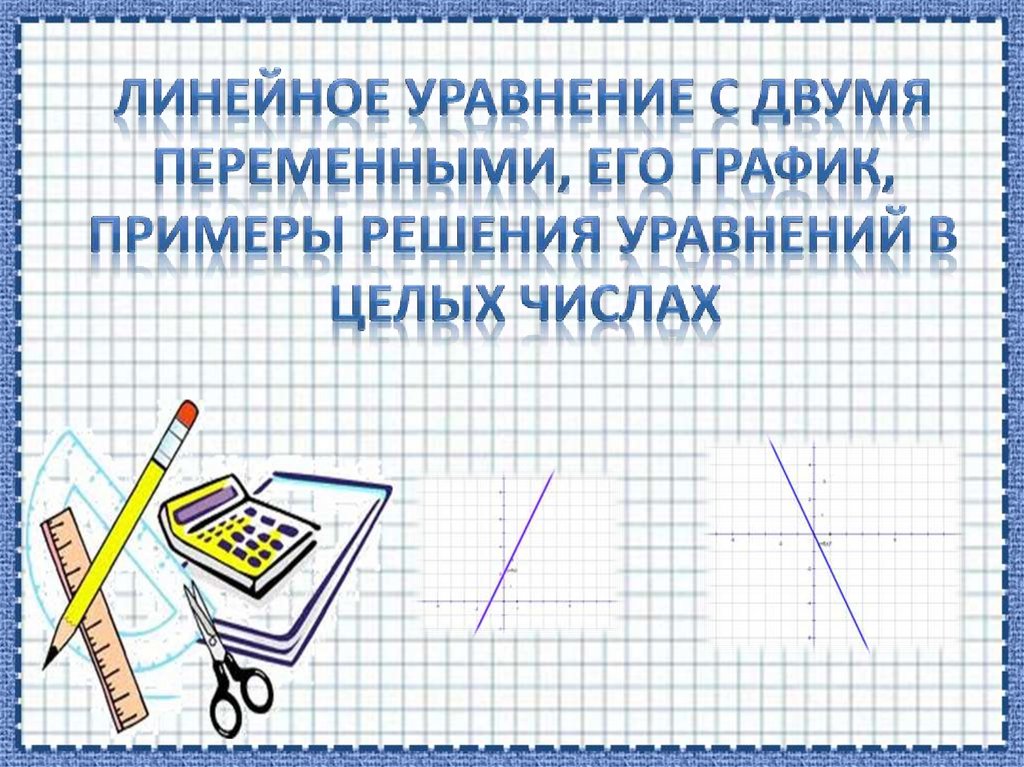 1. Линейное уравнение с двумя переменными, его график, примеры решения уравнений в целых числах