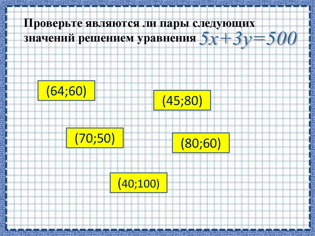 Проверьте являются ли пары следующихзначений решением уравнения