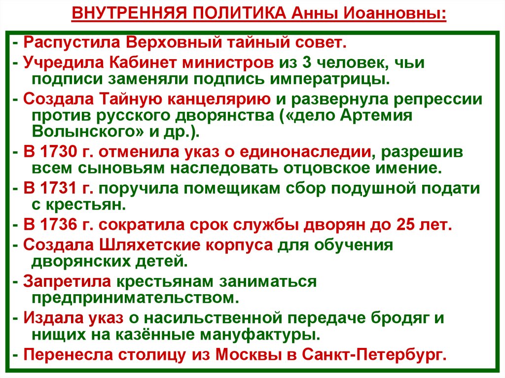Период в истории России с 1725 по 1762 гг.Анна