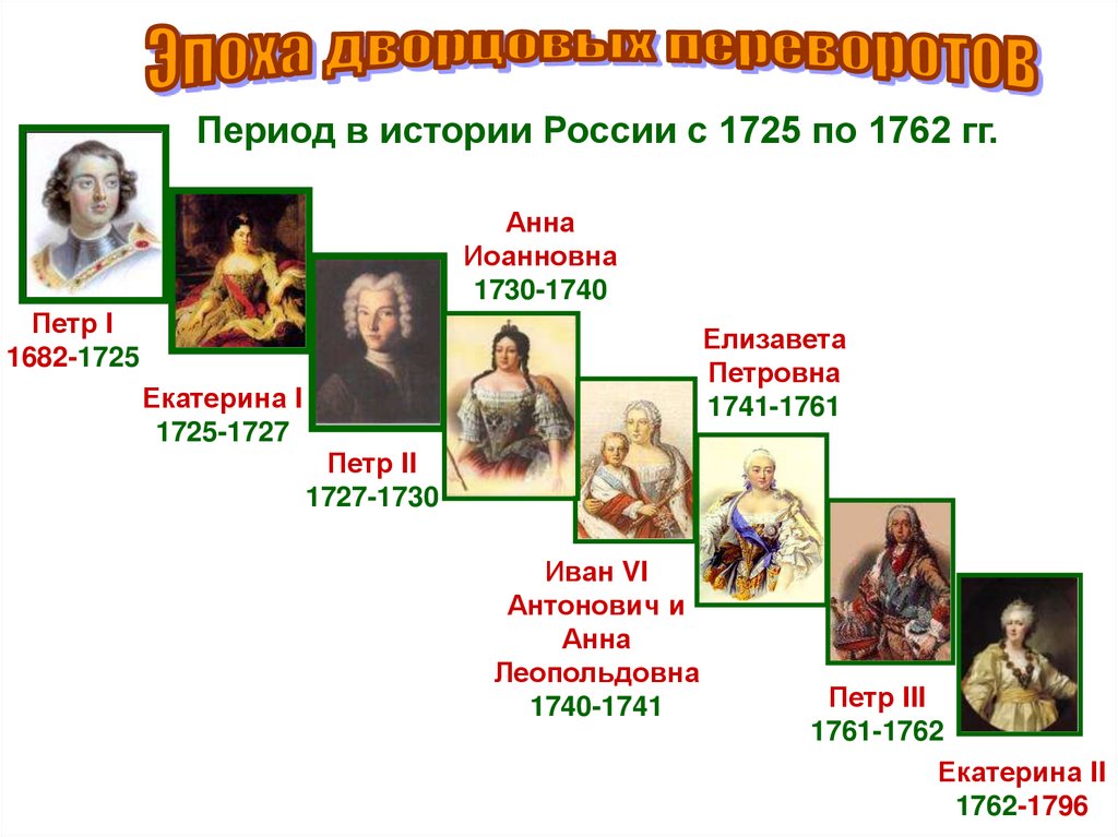 это период в истории России с 1725года по 1762 год, ознаменованный