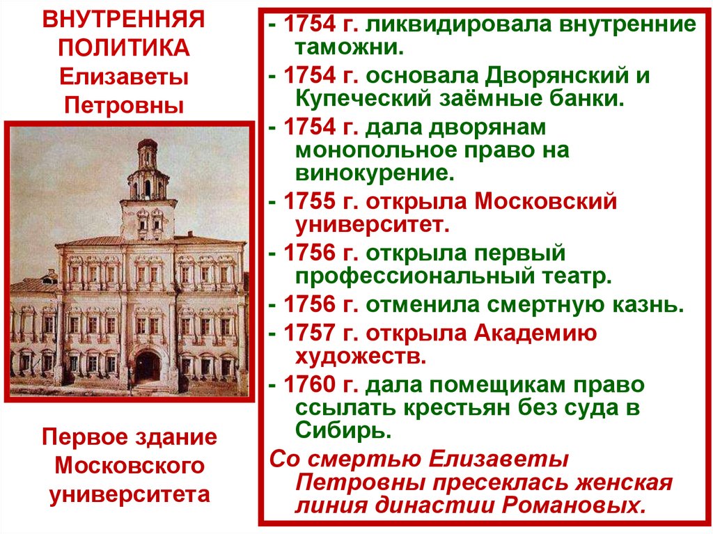 Внутренняя политика российских правителей в 17251762 гг. была порой непоследовательной и потомумалоэффективной. Последовательность сохранялась