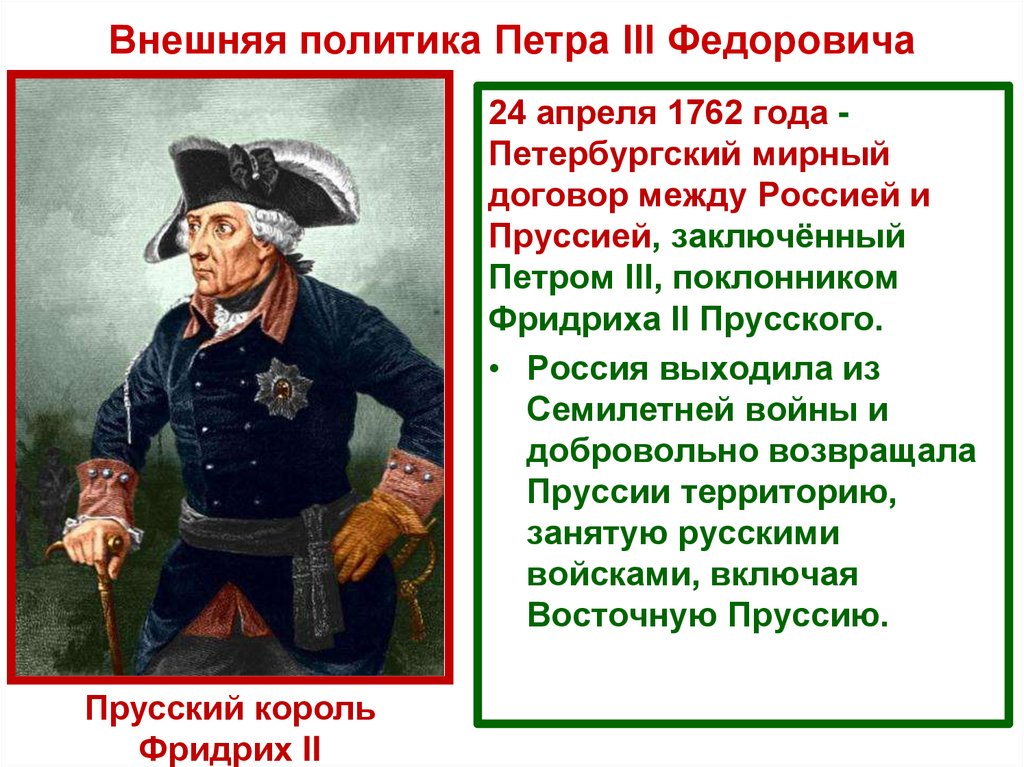 Внешняя политика Петра III Федоровича24 апреля 1762 года Петербургский мирный