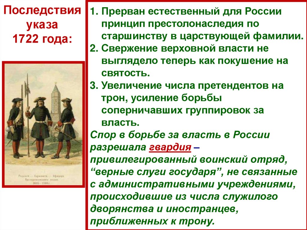 Последствия 1. Прерван естественный для Россиипринцип престолонаследия по