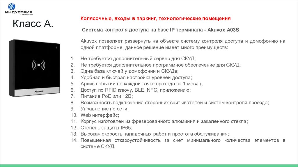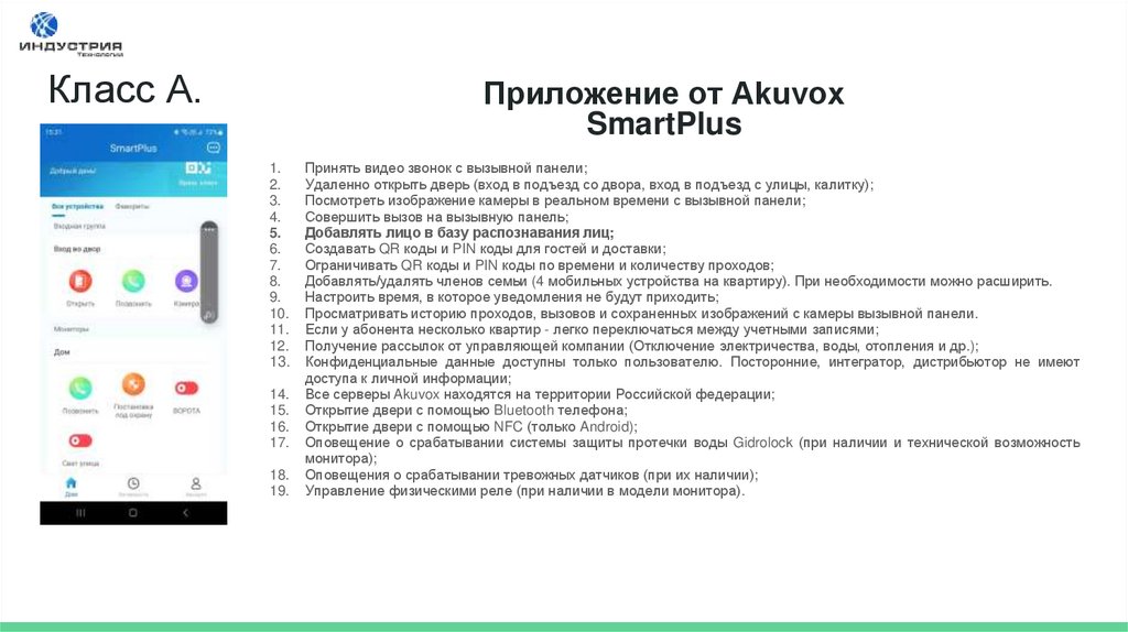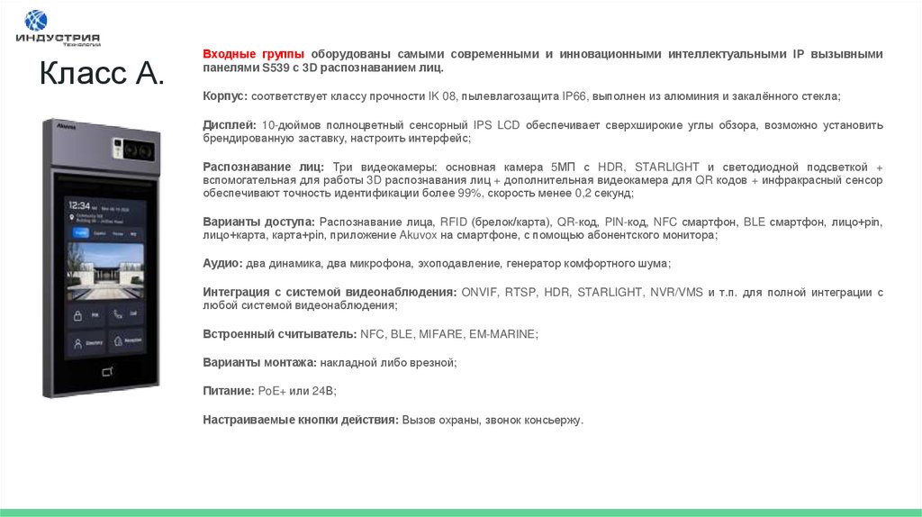 Класс А.Входные группы оборудованы самыми современными и инновационными интеллектуальными IP вызывными