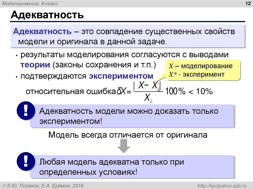 Адекватность – это совпадение существенных свойств