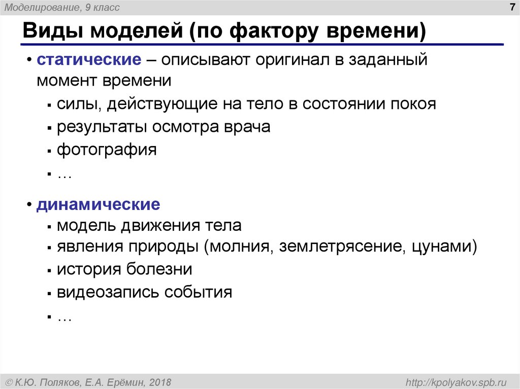 Виды моделей (по фактору времени)