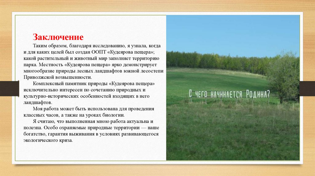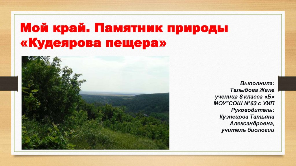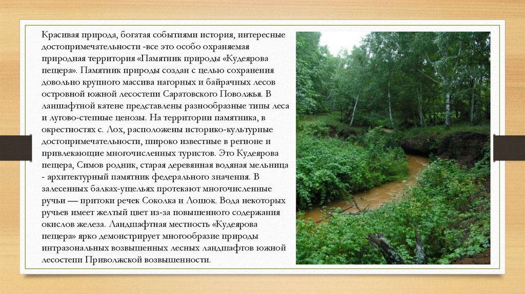 ПАМЯТНИК ПРИРОДЫ «КУДЕЯРОВА ПЕЩЕРА»Профиль: комплексный (ландшафтный, историко-культурный)