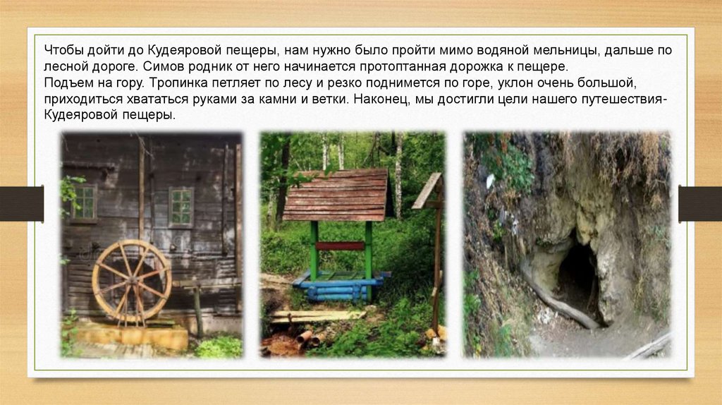 Чтобы дойти до Кудеяровой пещеры, нам нужно было пройти мимо водяной мельницы, дальше полесной дороге. Симов родник от него начинается протоптанная дорожка к пещере.
