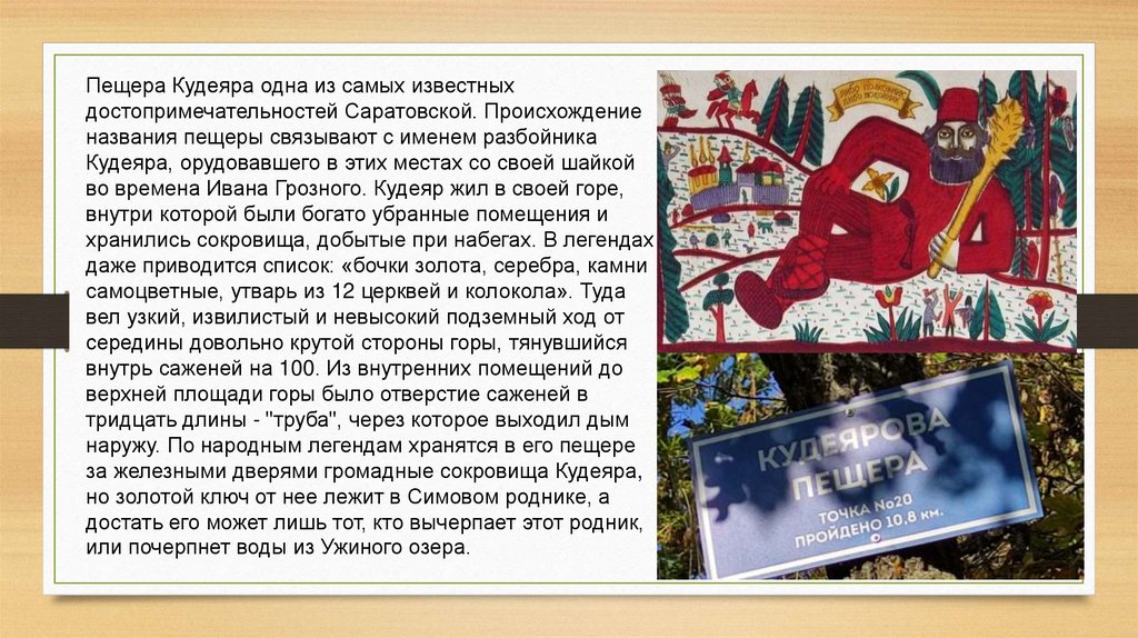 Пещера Кудеяра одна из самых известныхдостопримечательностей Саратовской. Происхождение