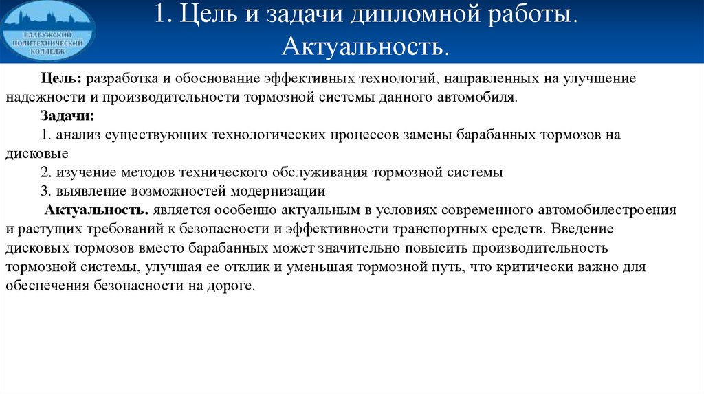 тормозной системы, что позволит значительно повысить безопасность и эксплуатационные