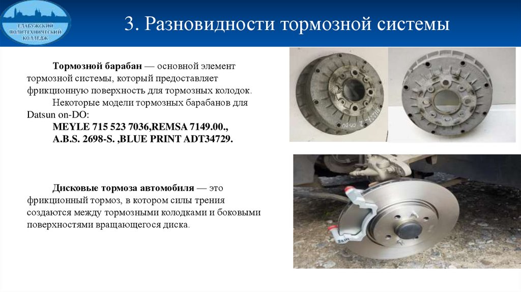 3. Разновидности тормозной системыТормозной барабан — основной элемент