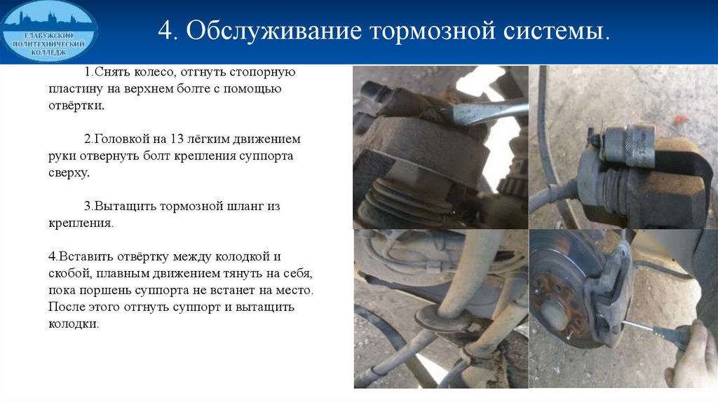 4. Обслуживание тормозной системы.1.Снять колесо, отгнуть стопорную